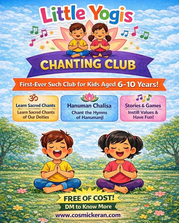 Little Yogis Chanting Club is a nurturing space where children are gently introduced to the power of mantra chanting and spiritual values. Through guided mantra chanting and Hanuman Chalisa, children learn to cultivate calmness, focus, confidence, and emotional balance from an early age.At Little Yogis, we believe that when spiritual seeds are sown early, they grow into strong roots for life. Our approach is joyful, inclusive, and age-appropriate, creating a safe and peaceful environment where children learn, grow, and chant with love.